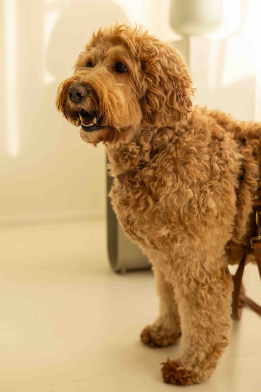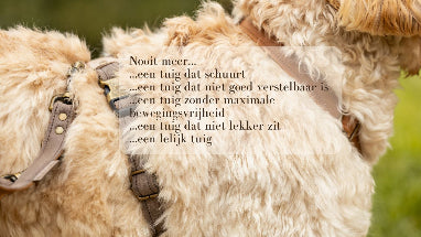 Ik ben een harige viervoeter met krulletjes en mijn hondenbaasje vind het lastig om een goed tuig voor mij te vinden.